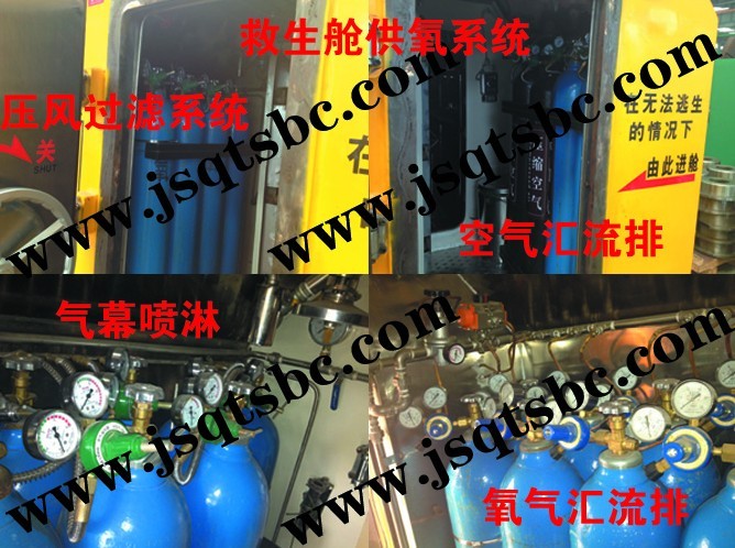 具备压风送氧、自备氧、及自救器三级供氧系统保障,能够保障救生舱内人员呼吸氧气浓度在:18.5%-22%之间,最高不超过23%。